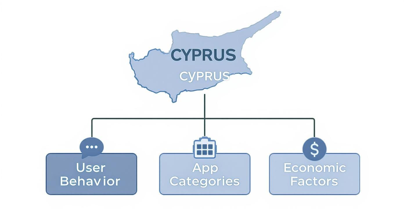 To run effective ASO in Cyprus, you first need a clear picture of the local environment. A one-size-fits-all strategy designed for larger European markets is unlikely to perform. You have to account for local user expectations, top-performing categories, and the broader economic context on the island.