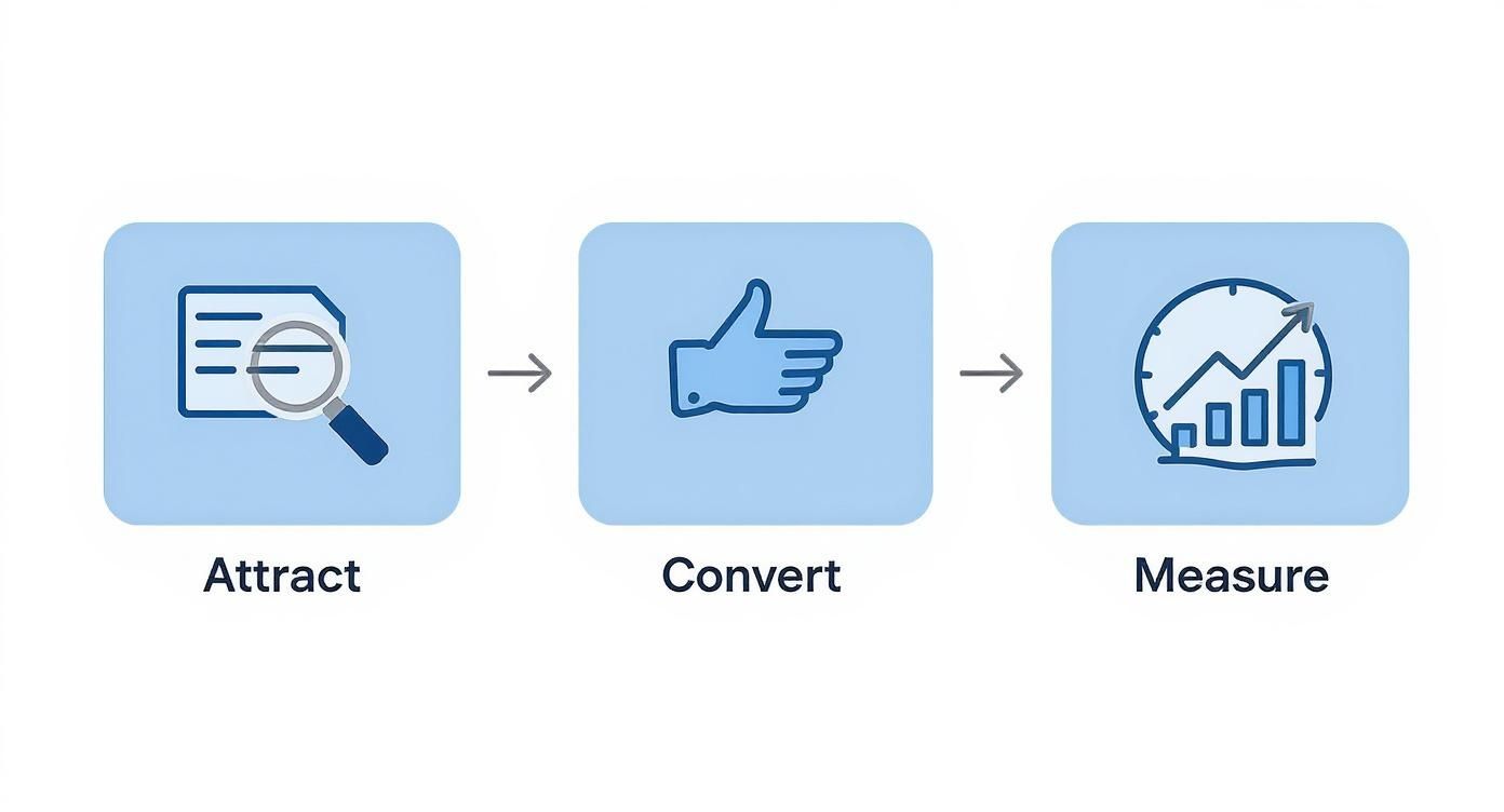 Each step reinforces the next, forming a continuous optimization loop — attract, convert, measure, refine.