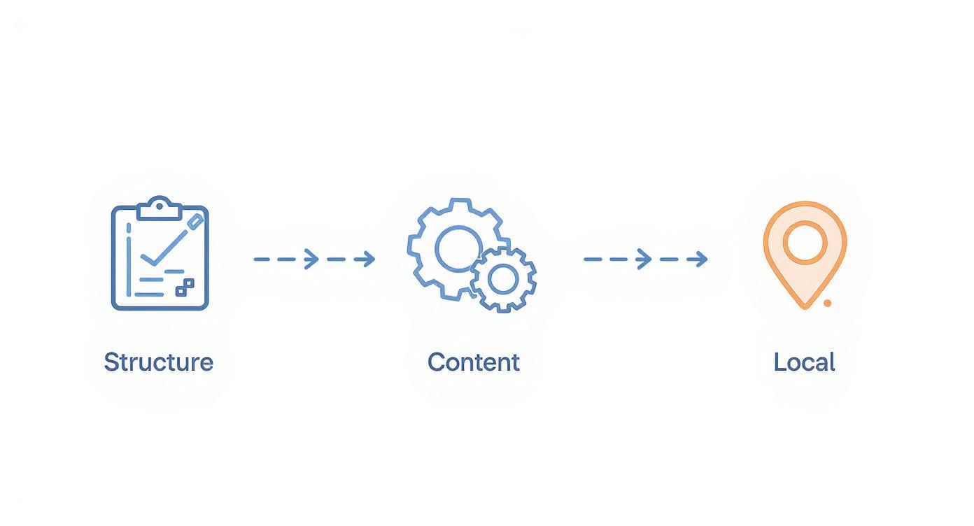Your keyword map should define your site’s layout. A logical, SEO-driven structure improves both usability and ranking strength.